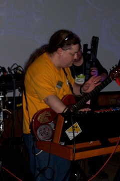 electric guitar, loop guitar, Warr guitar, Moog and modular synths, visuals